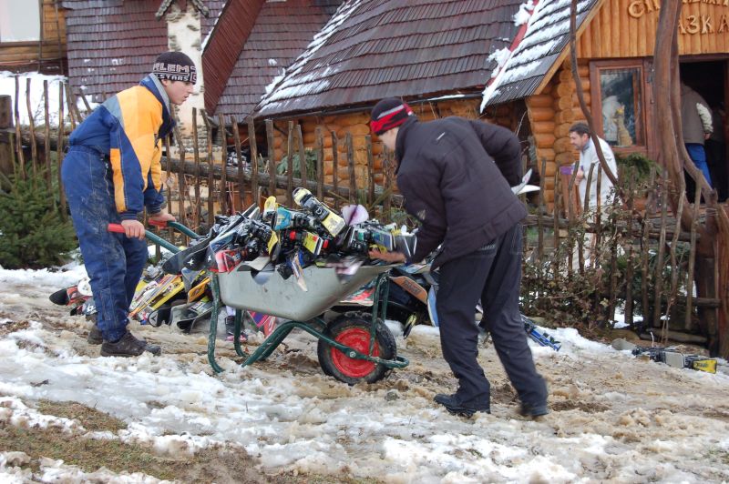 Этнографическая экспедиция посетила сегодня озеро Синевер, самое большое озеро в горных Карпатах. Озеро так себе, Несамовите на Черногорском хребте гораздо более горное и озерное. Здесь же вас гостеприимно встречают шлагбаумы с кассами, десятки кабаков, и колонна унылых лошадок с санями для транспортировки любителей прекрасного, которые настолько прониклись впечатлениями, что к самостоятельному перемещению не способны.