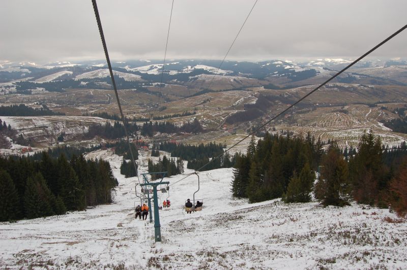 Сегодня включился кресельный подъёмник (судя по этикеткам - списанный из секанда в Австрии), что позволило сэкономить около километра сил при восхождении на одну из близлежащих вершин -- Гемба.