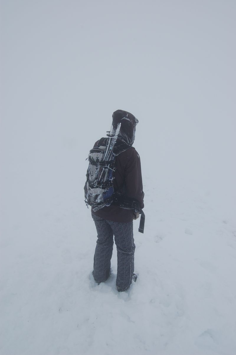 Вершина Гембы выкупается исключительно по приборам, GPS показал 1499 метров, хотя на карте Генштаба указано какгбэ меньше. Не видно не просто ничего, а даже конец писательной струи читается нечётко.